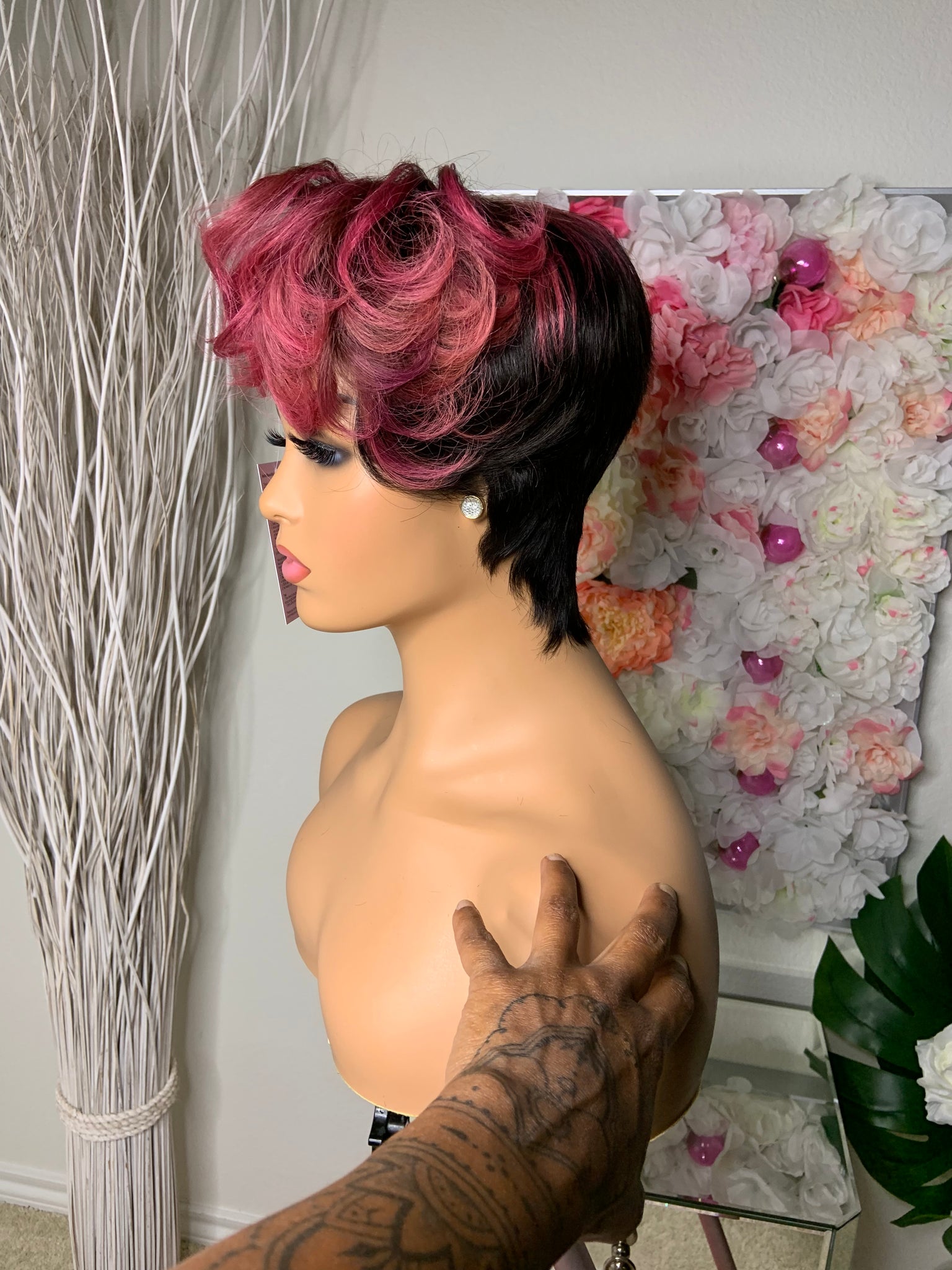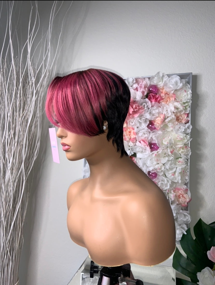 ✨Glueless✨ short, sassy & classy unit w/a Pop of colour (Raspberry Twist)